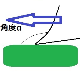 刃先がこの角度の場合は切削できます。当たり前ですね~この場合は角度αが大きくなります。